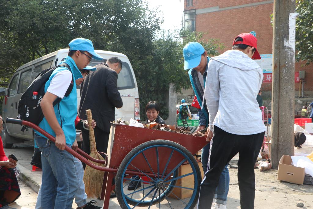 在志愿者们的协作下,菜市场上,堆积的杂物、散落的包装袋、果皮等垃圾被清理干净,卖水果的大爷说:“谢谢你们把菜场清扫干净了,我们会保持,不再把残余的物品随意丢弃了。”