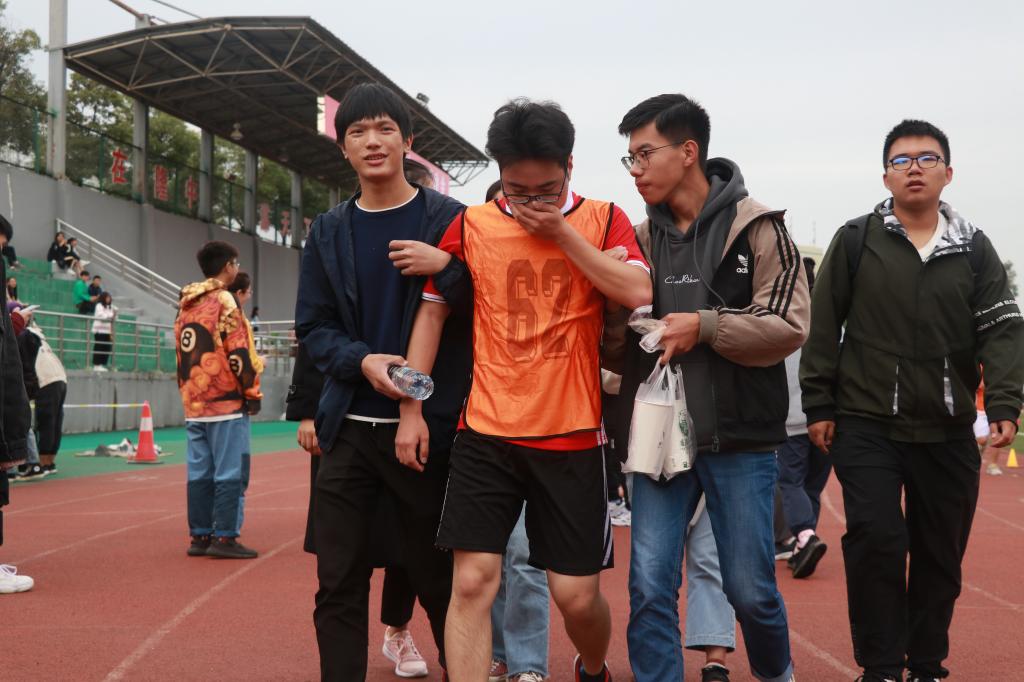 运动场上,运动员们尽情的挥洒汗水,运动场下,志愿者们细心做好后勤保障工作,送水买药,提醒检录喊加油,尽最大努力给运动员提供帮助。