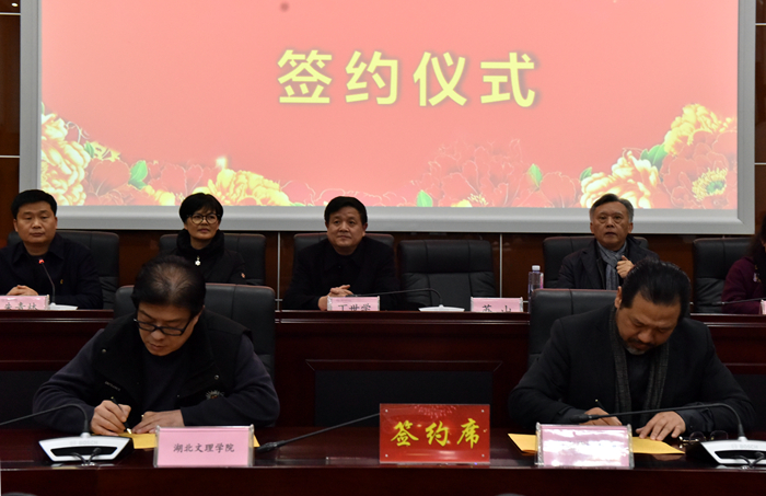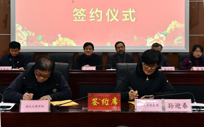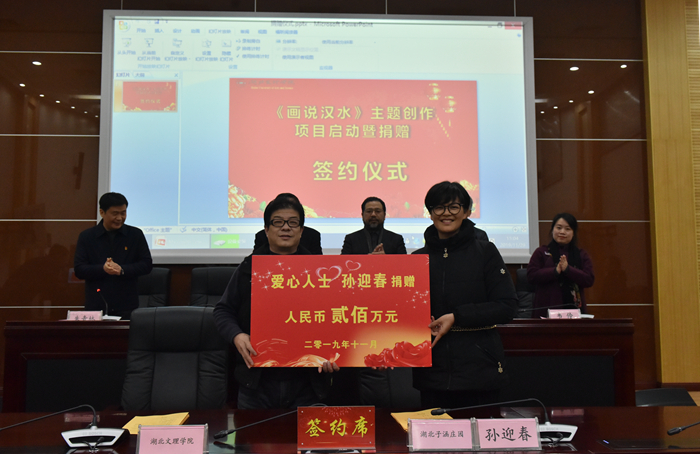我校美术学院院长蔡伟代表学校和孙迎春签订了捐赠协议、和苏山签订了校企共建写生创作基地协议。根据协议约定,孙迎春女士向学校捐赠200万元资金,用于《画说汉水》主题创作项目。我校与湖北子涵庄园将在“产学研”融合、共建实习实训教师队伍、课题研究及项目申报等方面开展合作。