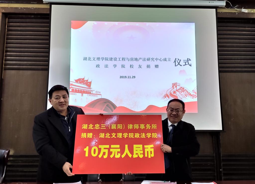 湖北忠三(襄阳)律师事务所向政法学院捐赠10万元