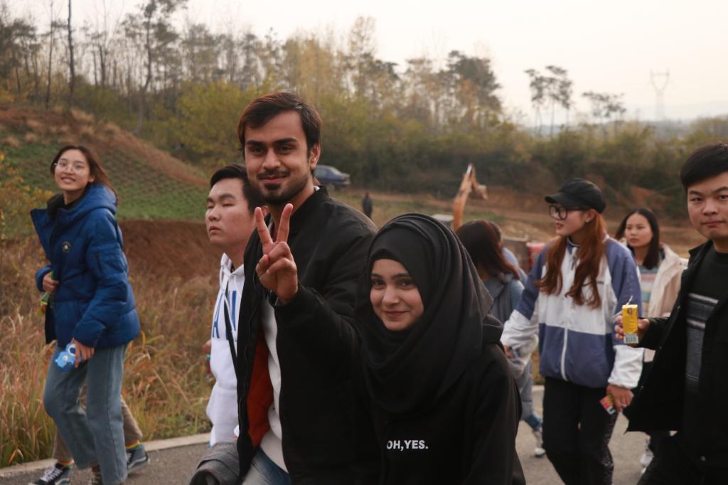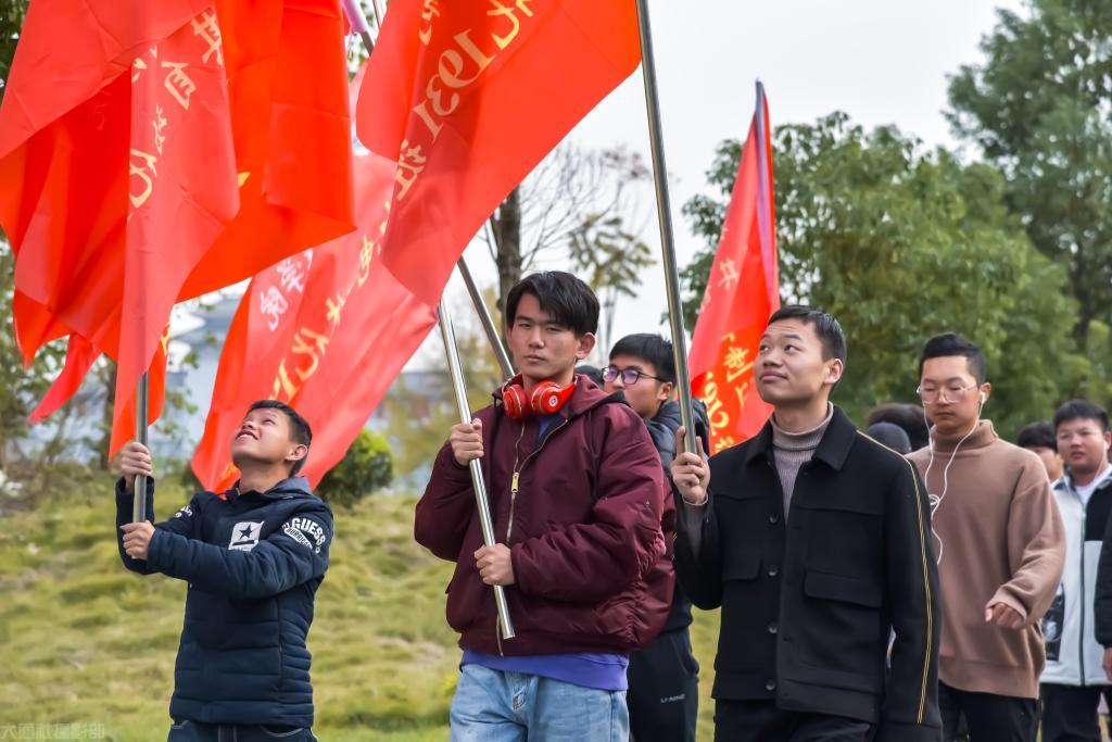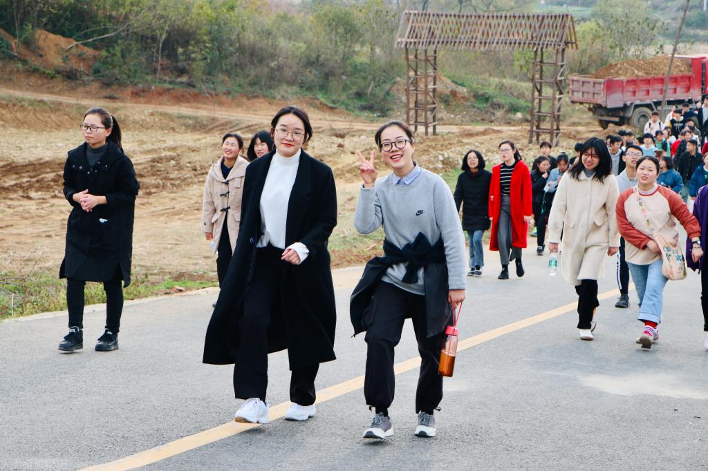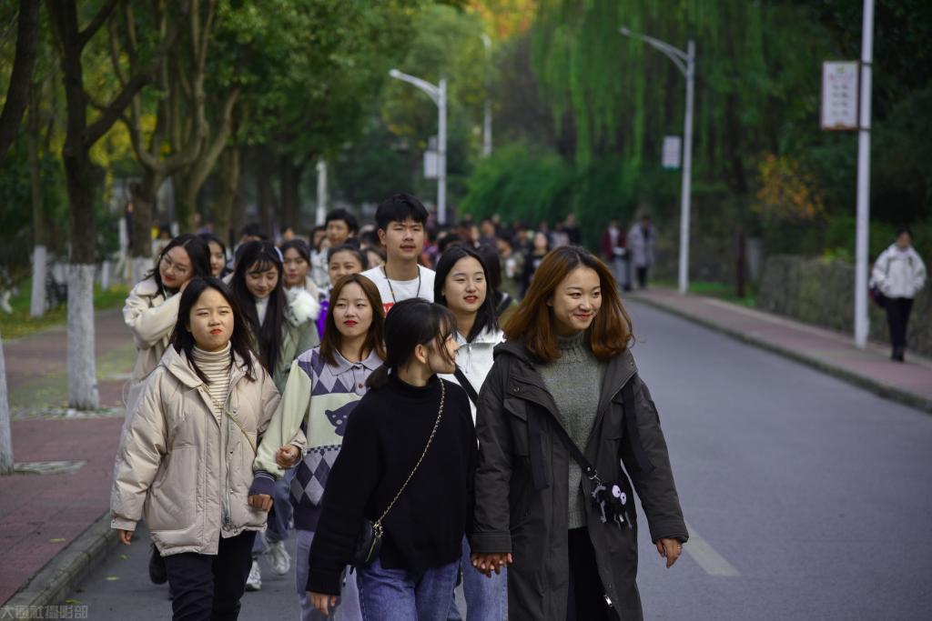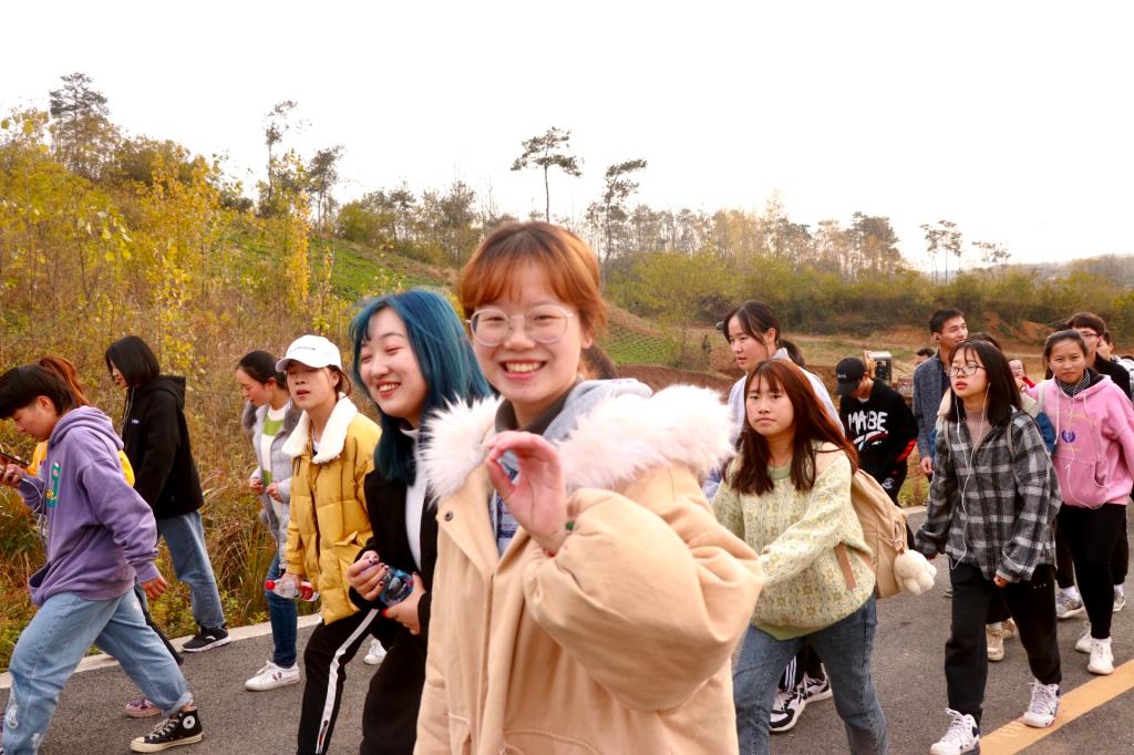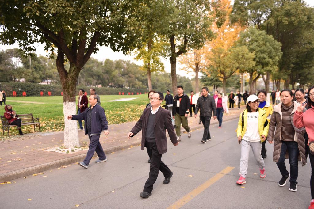 整齐有序的队伍从北区田径场出发,按照既定路线,徒步队伍绕大旗山一圈,一路上有温暖的阳光相伴。