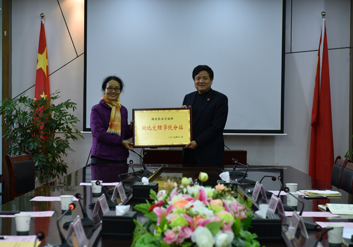 签约仪式上,王为一与陈汉梅分别代表湖北文理学院和湖北技术交易所,签署《湖北文理学院与湖北技术交易所共建资源分站合作框架协议》,葛琳与丁世学共同为资源分站揭牌。