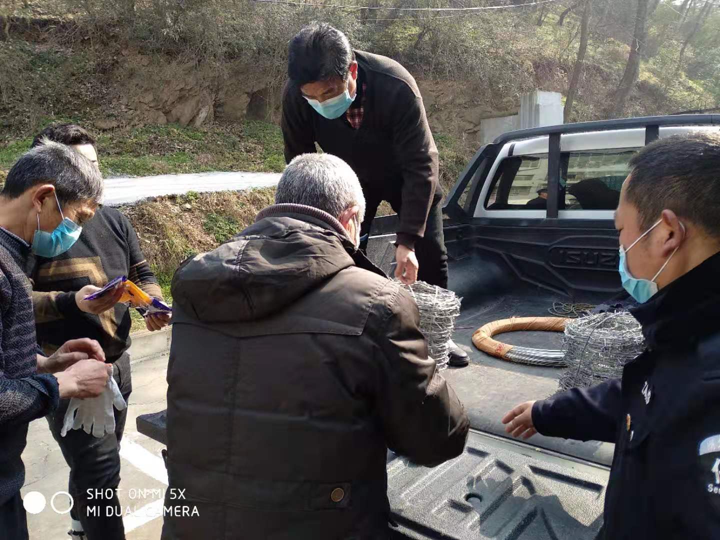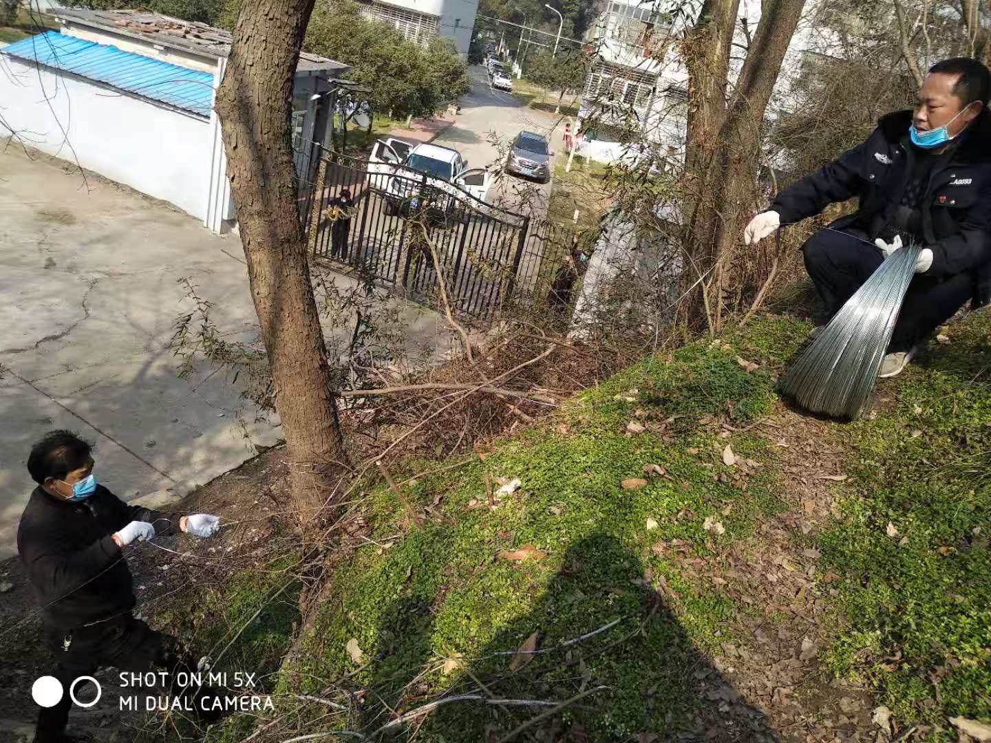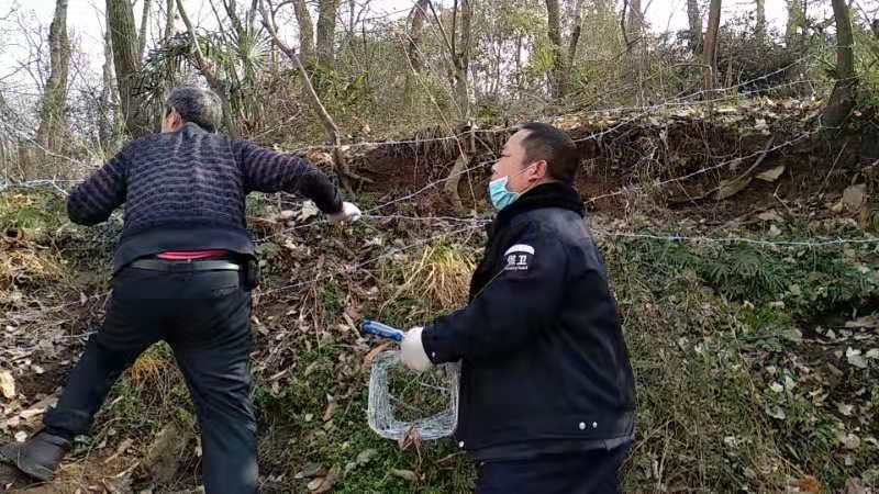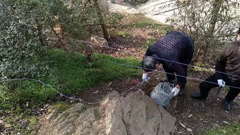 保卫人员在后山拉铁丝网