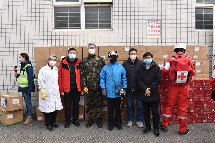 校医院姚忠强等在襄阳机场接收捐赠物资