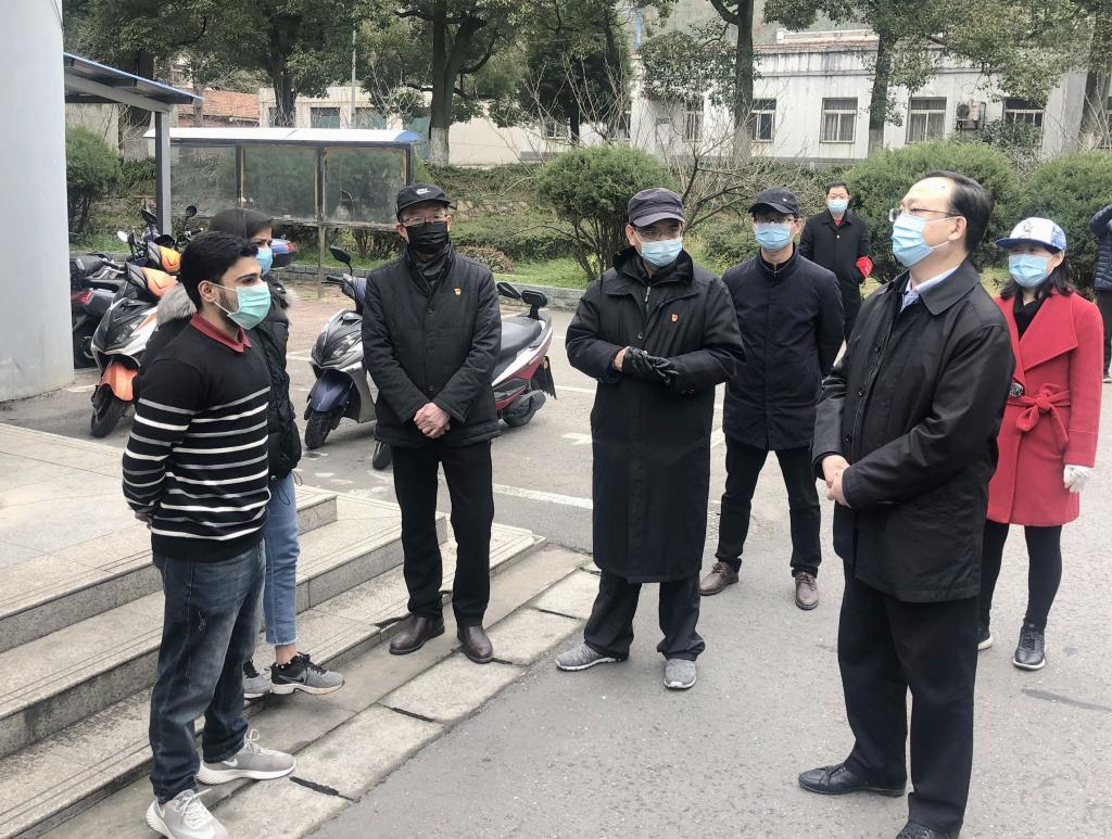 王忠运代表市委、市政府和李乐成书记向在校的留学生致以亲切的慰问,并向留学生赠送了面粉、鸡蛋、食用油、方便面等生活物资。王忠运详细了解了我校留学生的学习、生活情况,介绍了襄阳的疫情防控情况,希望大家再坚持一段时间,注意做好防护,保重好身体。