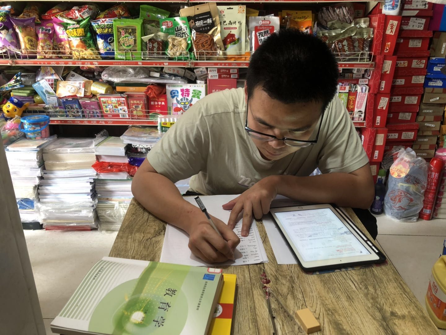 外国语学院 杜新阳 在自家的小卖部里边看店边学习