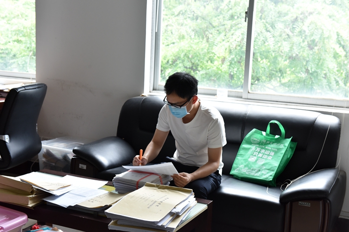 机械学院王友正在协助团队整理省科技进步奖申报材料