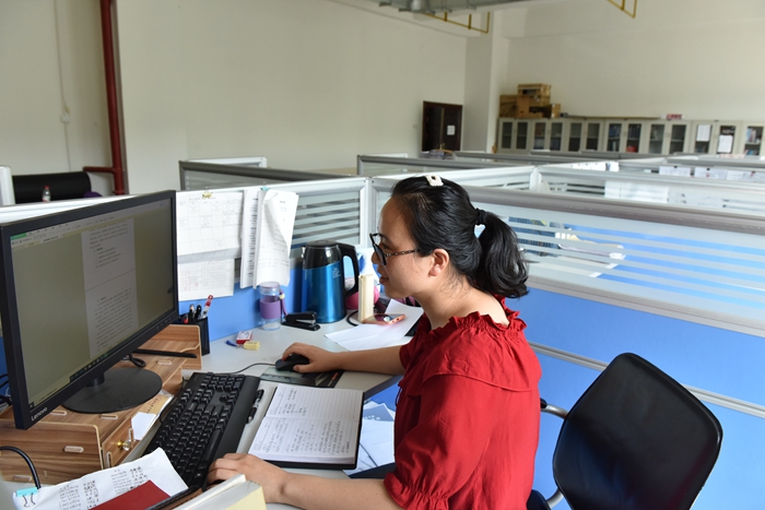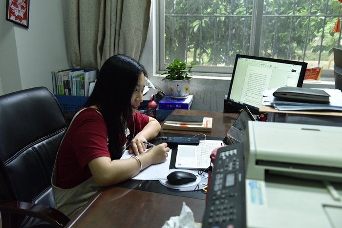 物电学院程晓红(右)、梁桂杰整理科研数据,撰写科研项目文本