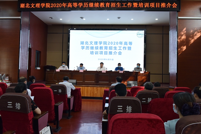 (继续教育学院 通讯员 郑安云)6月5日,学校继续教育学院·培训学院主办的“湖北文理学院2020年高等学历继续教育招生工作暨培训项目推介会”在襄阳市工会干部学校召开。副校长朱青林、继续教育工作领导小组成员代表、30余个函授站(点)和培训机构的代表共计60余人参加推介会。湖北三环锻造有限公司、湖北省石花酿酒股份有限公司、聚星馆股份有限公司(湖北)等单位派代表到会祝贺。会议由继续教育学院·培训学院院长张来斌主持。