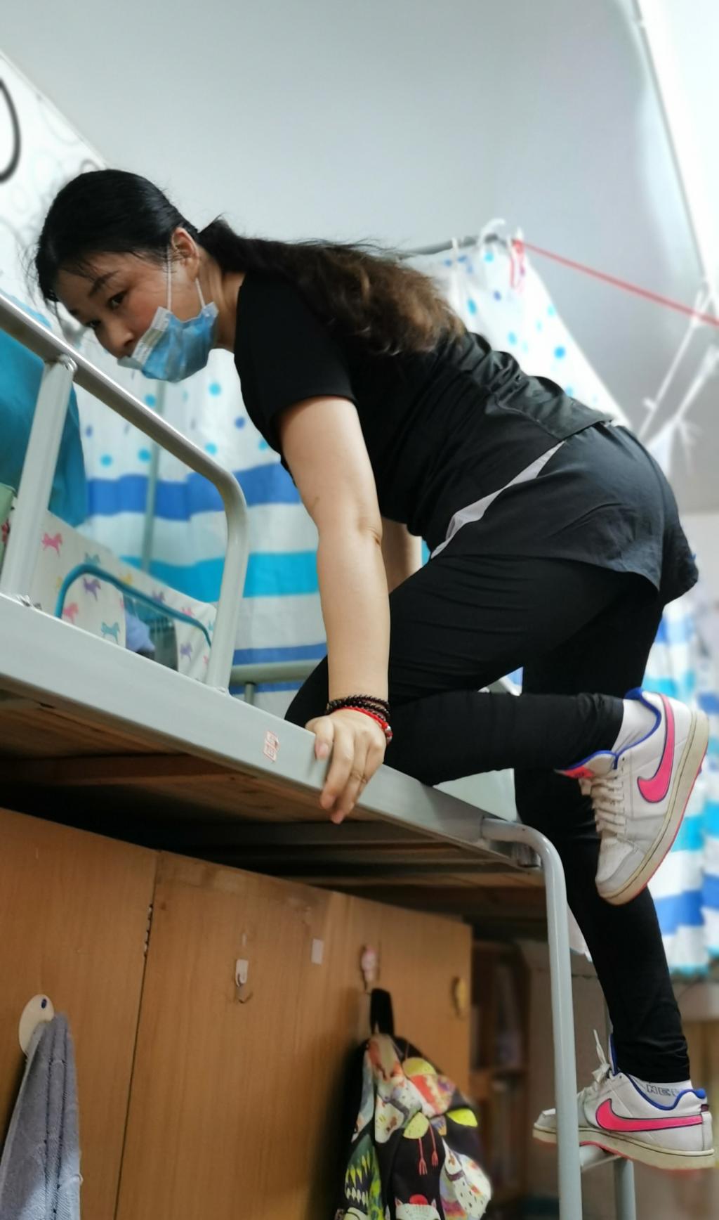 50多岁的曹海旻老师,一大早就驾车来到学生宿舍和同事汇合,到宿舍帮忙收拾,和年轻老师樊涛一起从四楼上下来回跑了5趟。他说:“为自己的学生做点事情,累点没关系,只要他们能愉快地毕业就好。”刘霞老师,一进到学生宿舍就忙个不停,当她爬到上铺为学生收拾被子蚊帐时,她说:“想起了当初送女儿上大学为她铺床的情景!”