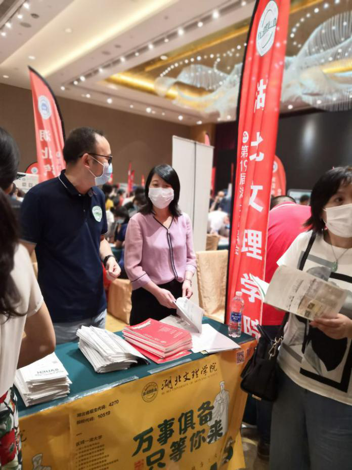 在黄石高校招生宣传点及咨询会现场,汪云慰问招生宣传工作人员,叮嘱大家要劳逸结合,以饱满的热情和精神状态投入工作,并与考生及家长进行沟通交流。