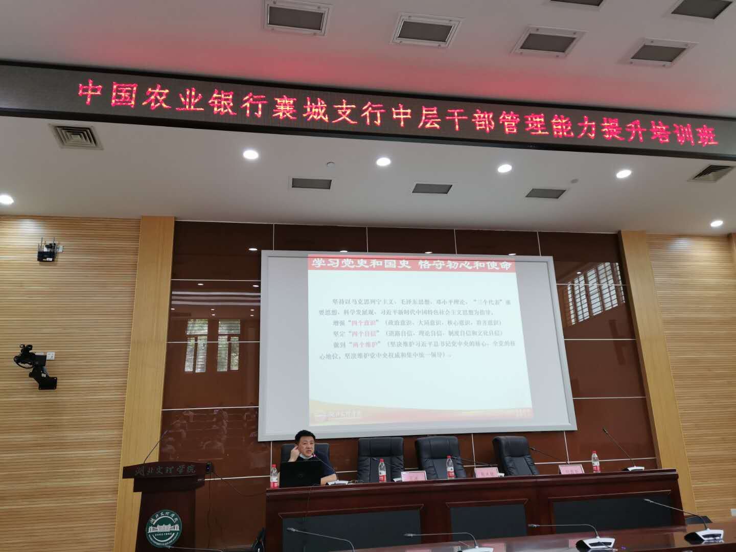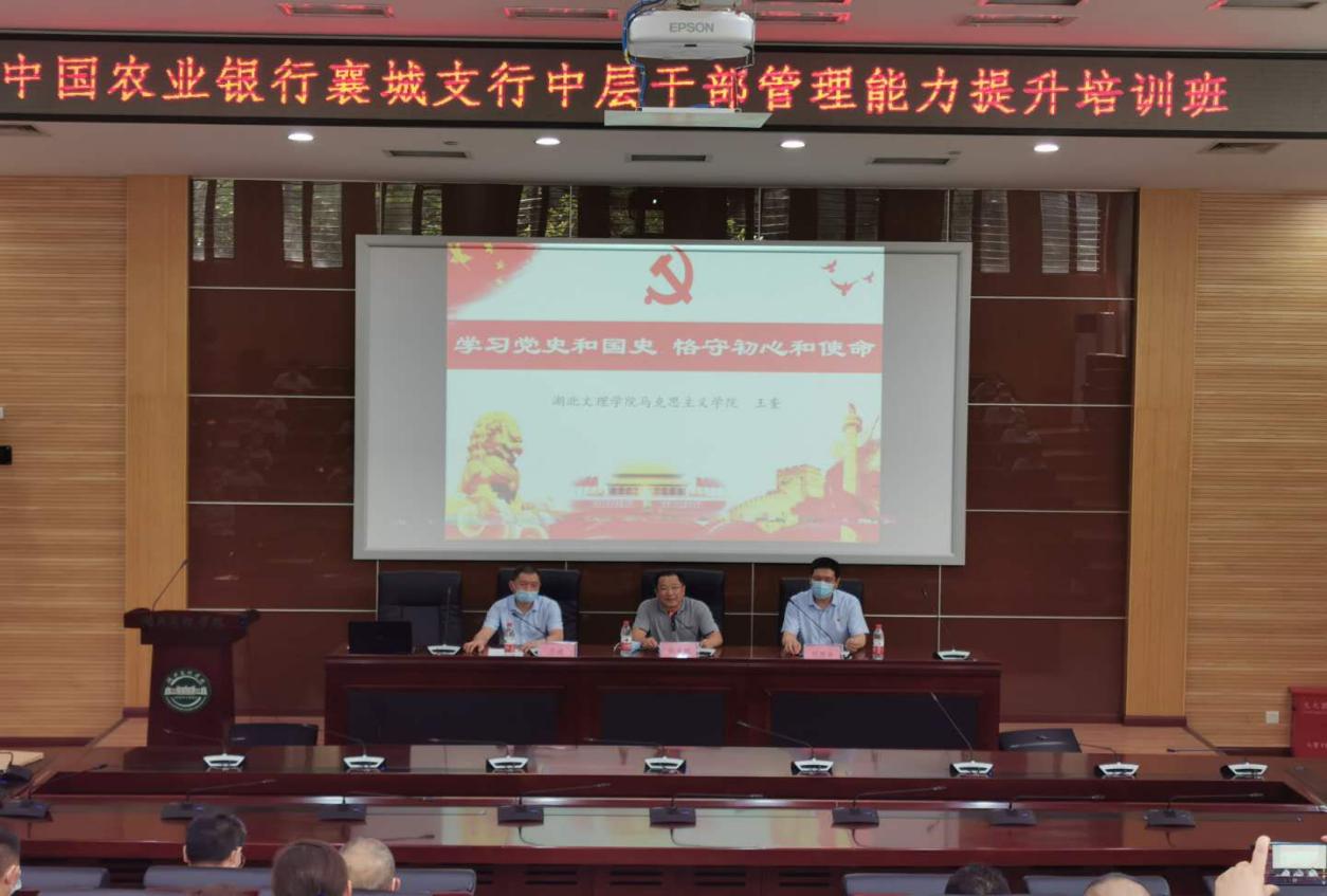(培训学院 通讯员 李传辉 刘雨蒙)7月31日下午,我校培训学院承办的“中国农业银行襄城支行中层干部管理能力提升培训班”在我校图书馆多功能报告厅举行开班仪式,42名参训学员参加开班仪式。开班仪式由农行襄城支行综合办主任王波主持,培训学院院长张来斌代表培训学院致欢迎词,农行襄城支行副行长刘西华作开班动员讲话。
