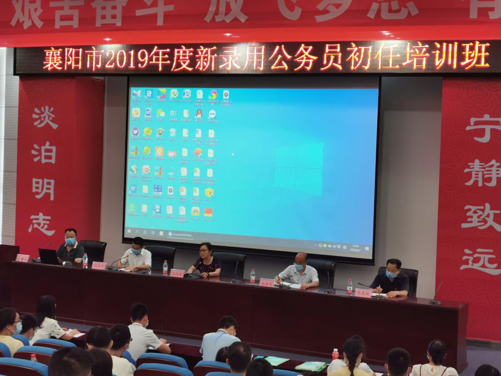 (培训学院 通讯员 王炜)8月7日下午,我校培训学院承办的“襄阳市2019年度新录用公务员初任培训班”在学校图书馆报告厅举行开班仪式,襄阳市委组织部副部长张再东、学校纪委书记宋双伟出席开班仪式,培训学院相关负责人、346名培训学员参加开班仪式。开班仪式由市委党校教务长杨华斌主持。