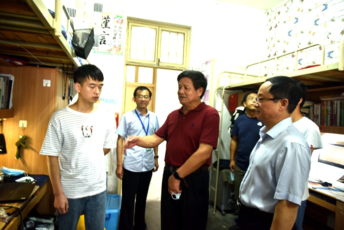 (宣传部 通讯员 卜润慧)8月30日上午,校长丁世学、党委副书记王为一带领相关职能部门负责人检查开学准备工作。丁世学一行前往学生宿舍、超市、快递点、食堂检查返校准备工作。
