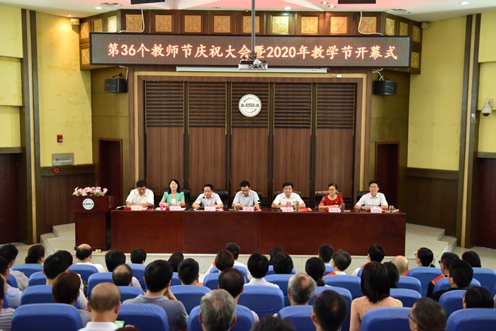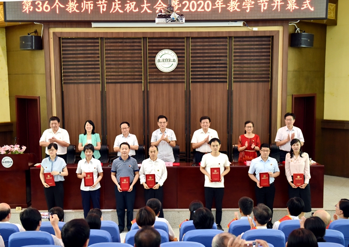 (宣传部 通讯员 李平 卜润慧)9月9日下午,学校举行第36个教师节庆祝大会暨2020年教学节开幕式。校领导,机关及直附属单位负责人,各二级学院院长、书记、教师代表,2020年度受表彰的教师代表,新增列硕士生导师代表,2020年新入职教师参加庆祝大会。大会由党委副书记王为一主持。