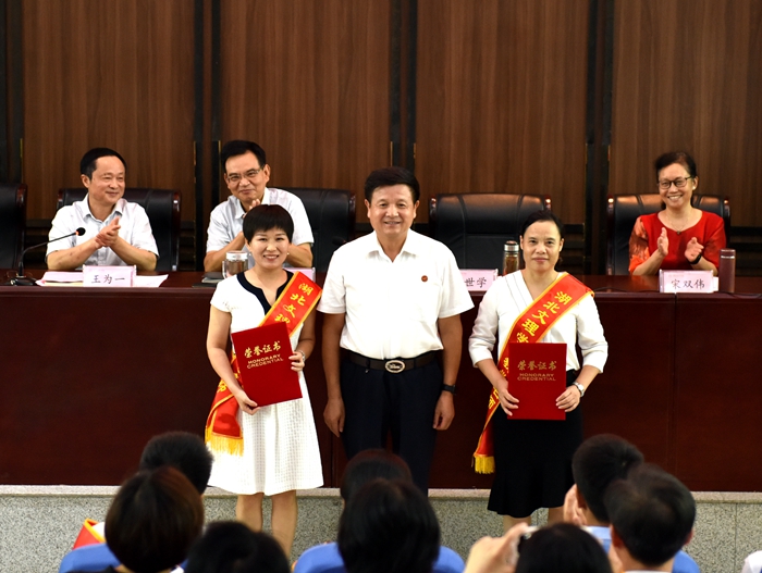 丁世学号召全体教职员工塑师者之魂、修师者之德、铸师者之能,将爱国兴校的豪情化作身体力行的实践,将智慧和汗水挥洒在一流大学建设的征程上,书写在立德树人的篇章里,为国家强盛、民族复兴、人民幸福培养更多全面发展的时代新人。