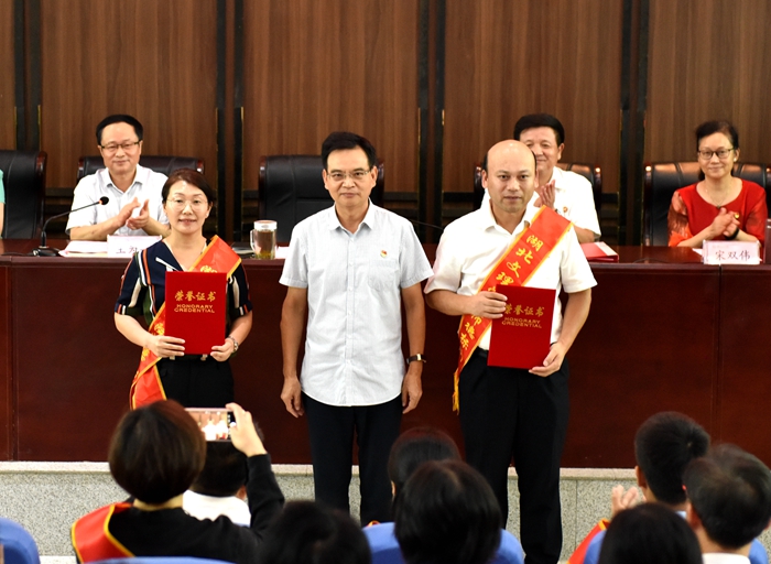 丁世学作题为《教育报国守初心 立德树人担使命》的讲话。丁世学代表学校,向辛勤耕耘、默默奉献在学校各条战线上,尤其是在今年抗击疫情战线上的教职员工,向为学校作出重要贡献,并坚持关心支持学校建设发展的离退休老同志,致以节日的问候和崇高的敬意!向加入湖北文理学院大家庭的新同事,表示热烈的欢迎!向受表彰的老师们,表示衷心的祝贺!