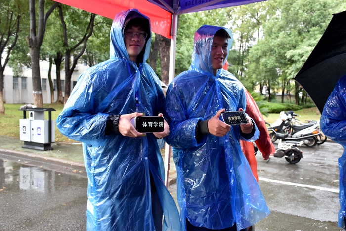 上午8时许,校长丁世学冒雨前往新生报到点卧龙广场查看报到情况。丁世学询问迎新志愿者,“每个学生完成报到流程需要多长时间?”“每个新生都安排了志愿者提供服务吗?”,迎新志愿者告诉丁世学,“我们为新生安排了志愿者,一对一提供服务,新生在报到点两分钟内就能完成报到手续,领取宿舍钥匙和学生手册后就由志愿者带领去宿舍。”丁世学叮嘱现场政工人员和志愿者,要把工作想得更细一些,更周到一些,切实为新生及家长做好服务,尽快协助新生完成报到,让新生体会到家的温暖。