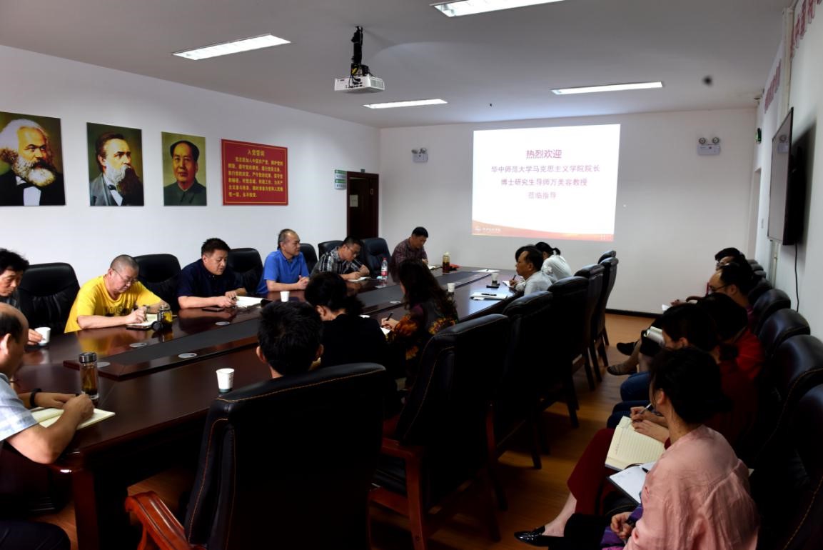(马克思主义学院 通讯员 刘松)9月21日,华中师范大学马克思主义学院院长、博士生导师万美容教授到我校马克思主义学院考察,并与马克思主义学院全体教师座谈。