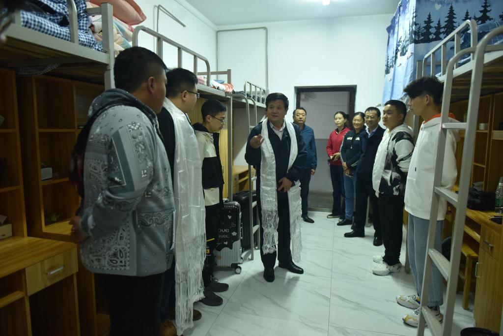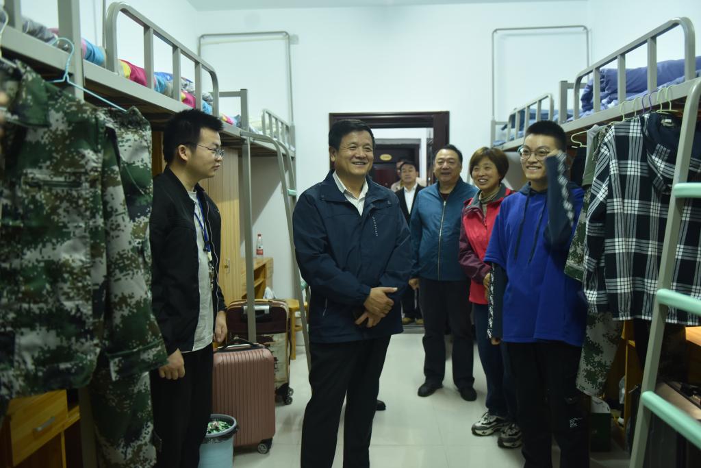 在文学与传媒学院、音乐与舞蹈学院、体育学院新生宿舍,丁世学与同学们亲切交谈,细心询问同学们到校后的生活情况,叮嘱大家要早日确定目标,并为之努力奋斗,四年后学有所成,实现自己的梦想。