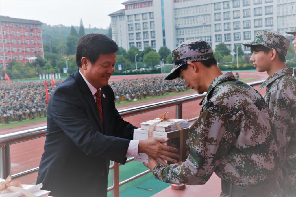 丁世学要求全体新生在军训期间,要进一步增强团结互助、合作共赢的集体荣誉感,养成服从命令、听从指挥的良好作风,培养顽强拼搏、勇往直前的进取精神,并将在军训中锻造的优秀品质转化为学习的动力,做一名有理想、有本领、有担当的时代青年。