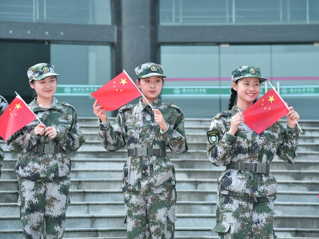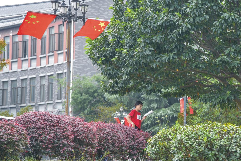 国旗升挂起来,“中国红”点亮了校园,爱国报国,爱校荣校,把喜悦、自豪等所有美好的情愫与深情的告白转化为爱国报国的具体行动, 让五星红旗在心中高高飘扬。(文字:卜润慧 摄影:李平、陈今轲、罗海涛)