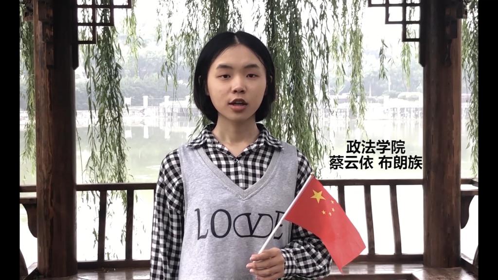 “伟大的祖国母亲,祝您生日快乐!祝您越来越好、越来越强大!”政法学院布朗族新生彩云依深情告白。
