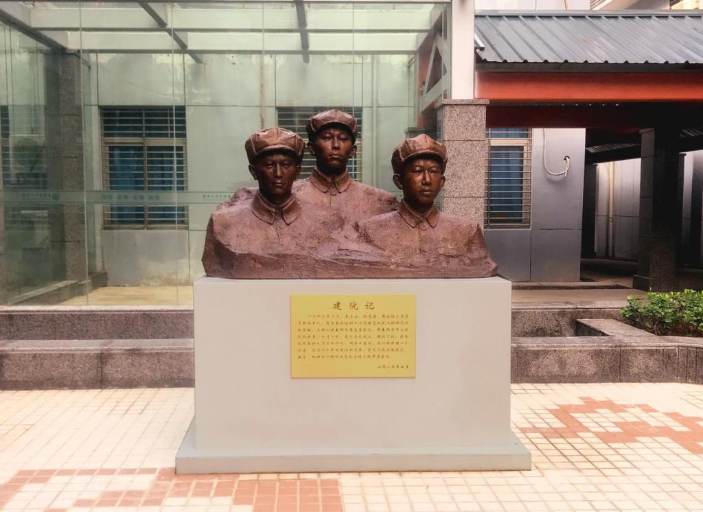 该雕塑是为了纪念学校附属医院创始人夏济安、杨克强、周永隆。1949年6月,这3名部队转业的年轻人用襄阳专署拨给的17包棉花从武汉换回药品和器械,受命创建襄阳专署直属医院,即襄阳市中心医院的前身。当年7月1日,医院正式成立。建院之初,医院仅有医护人员24人,旧房15间,内外科共用一个诊室。经过70年的建设和发展,医院已成为集医疗、教学、科研为一体的大型综合性三级甲等医院。