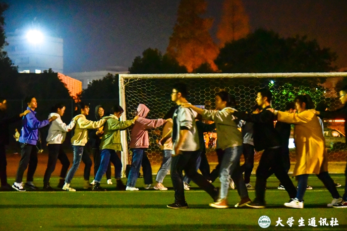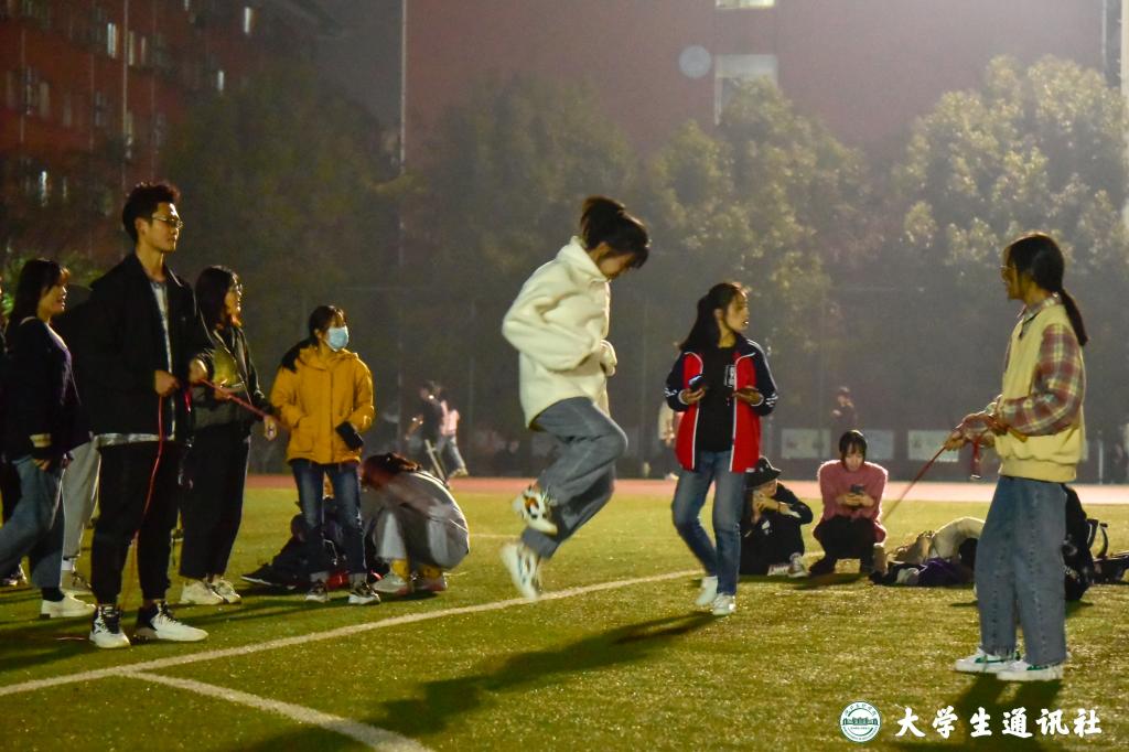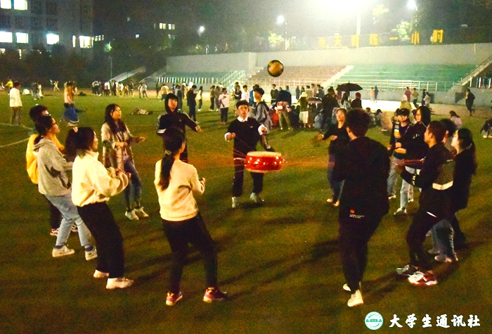 (大通社记者 明萌 张海英 杨咏琪 孙思雨)“30、31、32……”北区运动场传来整齐划一的声音,数学与统计学院运动员在练习运动会集体项目击鼓颠球,他们屏息凝神,将全部注意力集中在球上,随着球每一次落在鼓上、再被抛起默念着节奏。此时,运动场上,医学院运动员正在进行跳绳训练,摇绳的两位同学节奏一致,用绳子划出最大的弧线,跳绳的同学快速有序地钻进绳子,又迅速地离开让下一个同学接力……