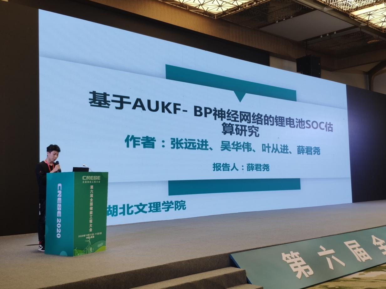 我校作为本次大会的联合主办单位,交通学院前期积极动员我校储能工程相关专业的教师向《储能科学与技术》投稿。本次会议由研究生处梁英处长带队,会议期间,与会专家和学者就“储能工程与新能源技术”的大会主题进行了广泛深入的交流与探讨。会上,交通学院吴华伟老师参与主持“钠离子电池及关键材料”的讨论、贾志勇老师就“二维多孔自支撑NiO纳米片的甲醇电催化研究”作邀请报告、研究生薛君尧就“基于AUKF- BP神经网络的锂电池SOC估算研究、研究生陈前就”一种面向电池组均衡模型的定量评价体系“分别作口头报告。