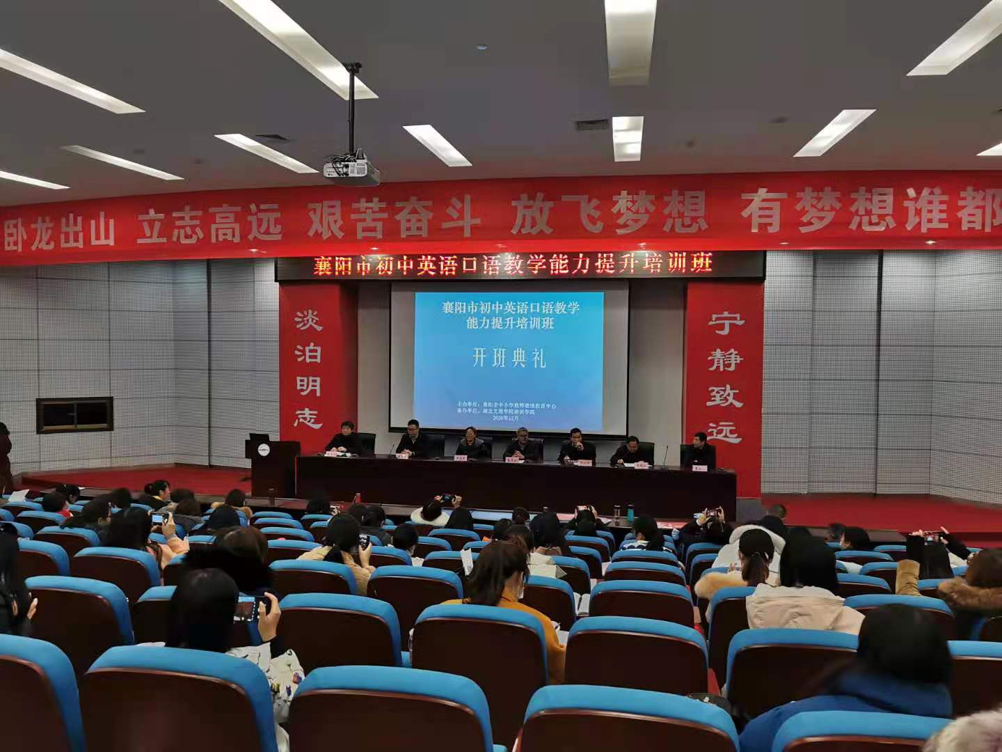 (培训学院 通讯员 曾子颖)12月5日下午,由襄阳市教育局、襄阳市中小学教师继续教育中心主办,我校培训学院承办的“襄阳市初中英语口语教学能力提升培训班”在学校图书馆三楼报告厅顺利开班。襄阳市教育科学研究室主任李茂炽、襄阳市中小学教师继续教育中心主任陈兴明等出席开班典礼。开班典礼由襄阳市教育科学研究室主任副主任李国权主持,培训学院副院长郑安云参加活动并致辞。