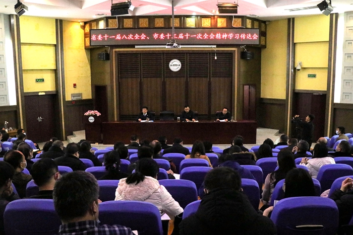 党委副书记王为一传达省委十一届八次全会精神,校长丁世学传达市委十三届十一次全会精神。