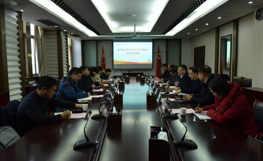 (后保部 通讯员 向珊珊)12月16日,华中农业大学资产经营与后勤保障部(资产经营公司)部长(总经理)李寒及党委书记、董事长周琼一行六人就学校后勤保障及资产经营管理等工作到我校考察交流,学校校长助理曹健、后勤保障与资产管理部(医院)及后勤集团•资产经营公司等相关人员参加座谈交流。