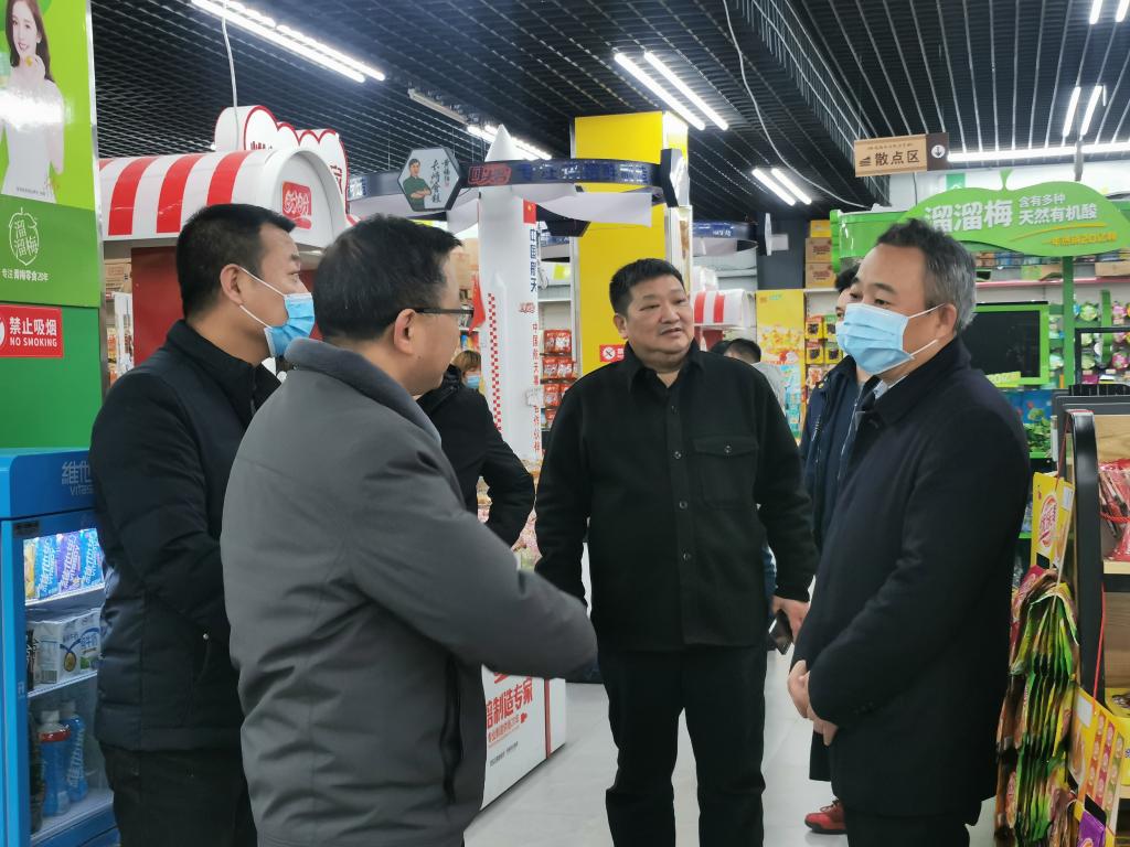 罗军(右)在超市检查 图片由通讯员提供