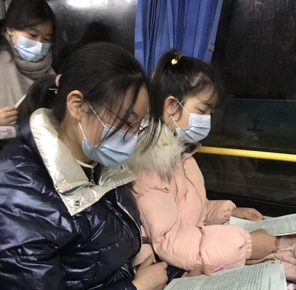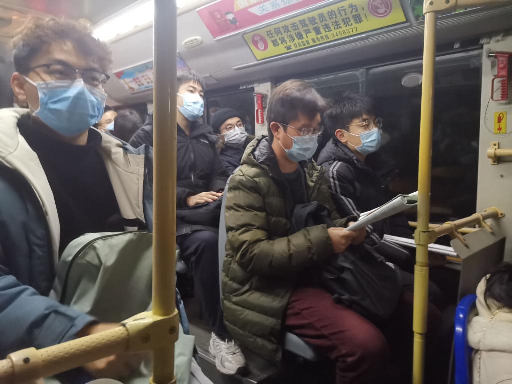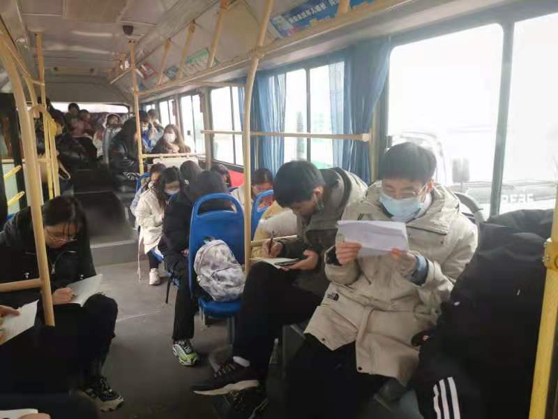 送考车上,有的同学抓紧时间再看会儿书,有的同学选择再眯一会儿养精蓄锐。