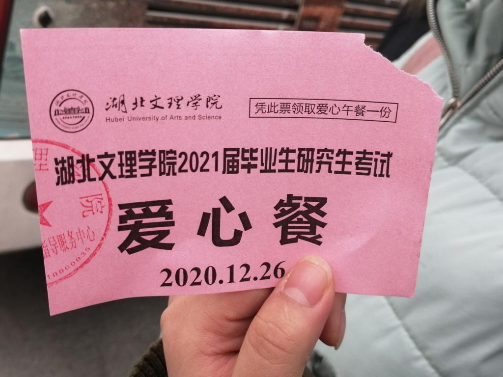 今年我校有近1400名学生参加2021研究生招生考试,考场分布在市区五所中学,由于考点离学校比较远,同学们大多不熟悉考点位置和周边的用餐环境,且考试期间午间休息时间较短,为保证考生按时安全到达考场,吃上营养的饭菜,学校学工处、招就处联合二级学院为考研学生提供送考、送午餐服务。